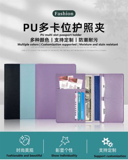 Al1079 bulk my first card rfid leather luxurious custom passport holders business multi slot pu designer customize family travel wallet passport holder